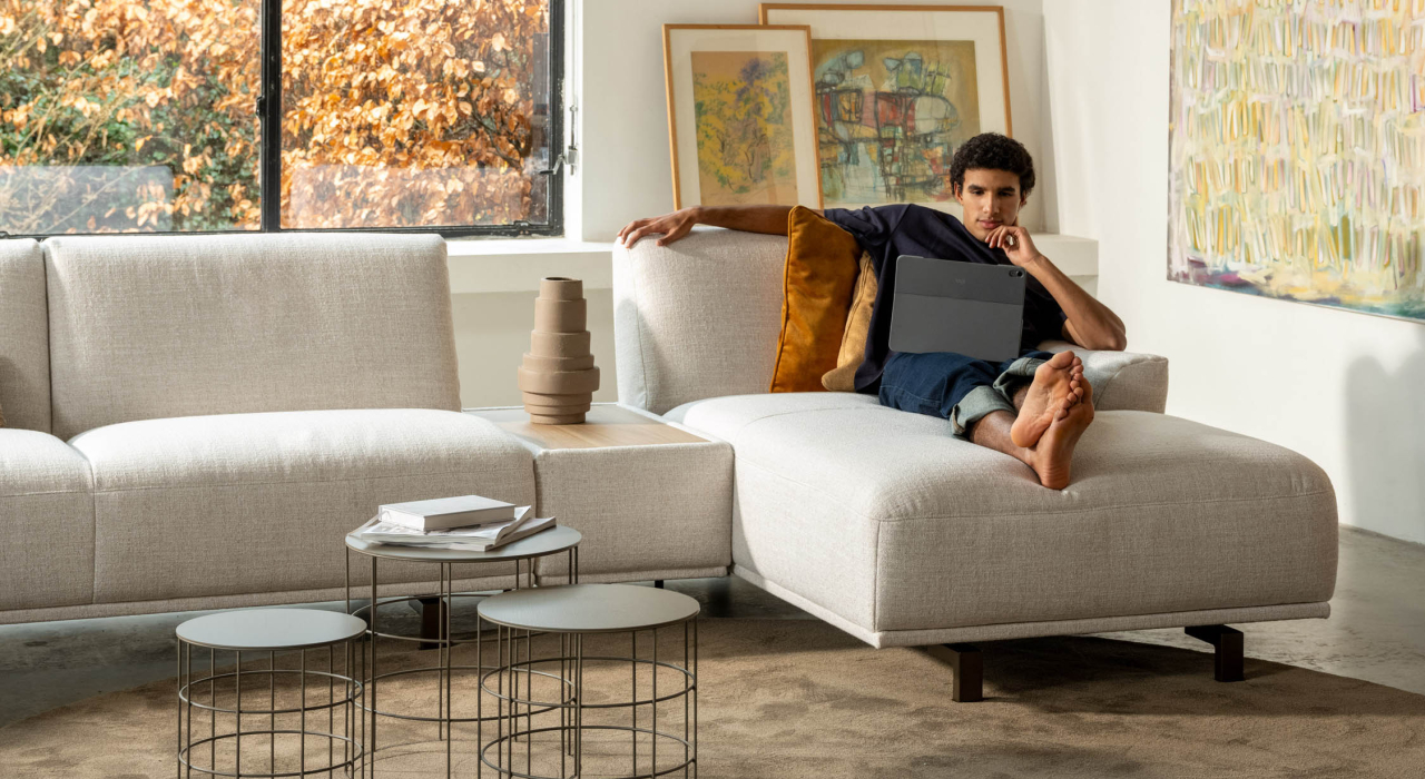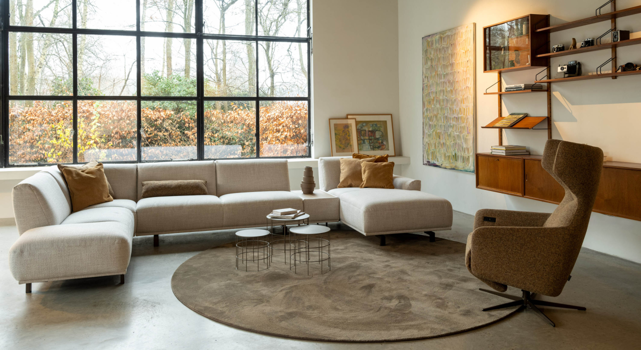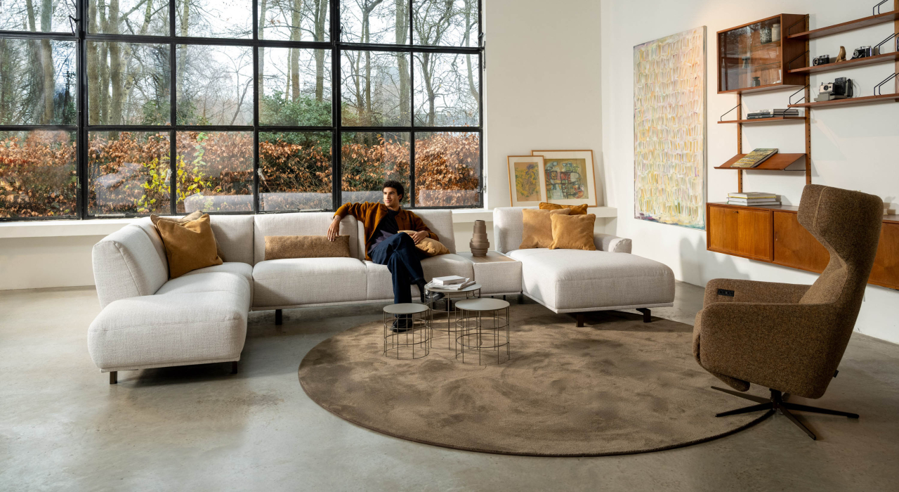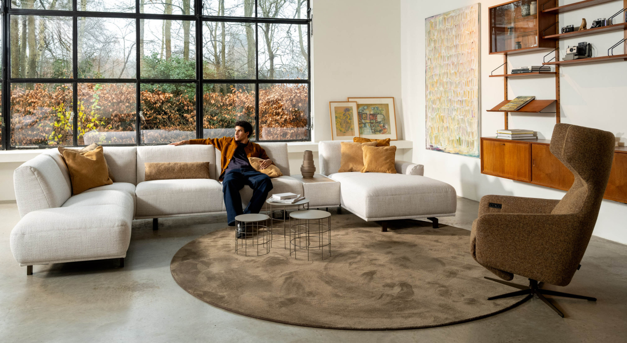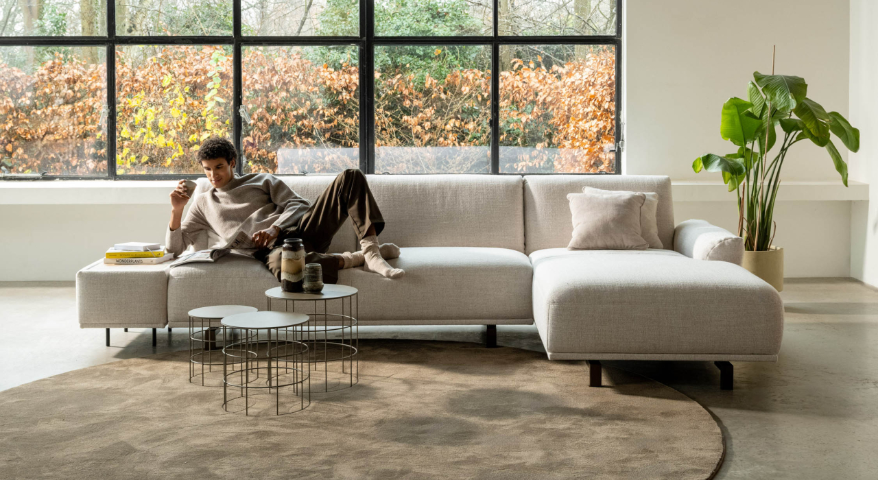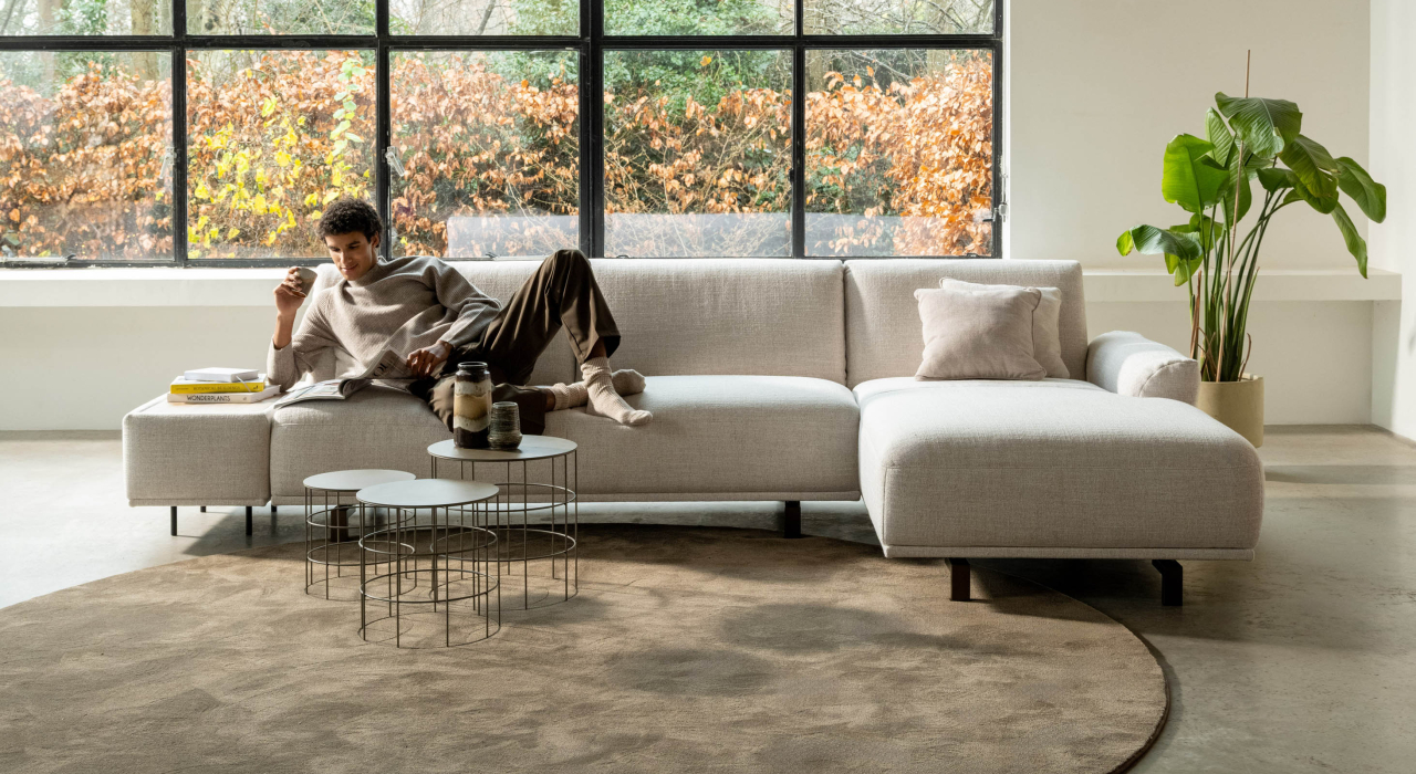 Ses formes douces, ses volumes aérés et ses détails subtils en font une véritable pièce maîtresse dans n’importe quel salon. Avec son assise généreuse et sa large partie lounge, il offre une sensation de confort absolu. Son design modulaire permet d’adapter MILOU à votre espace — avec ou sans angle, chaise longue ou table intégrée.